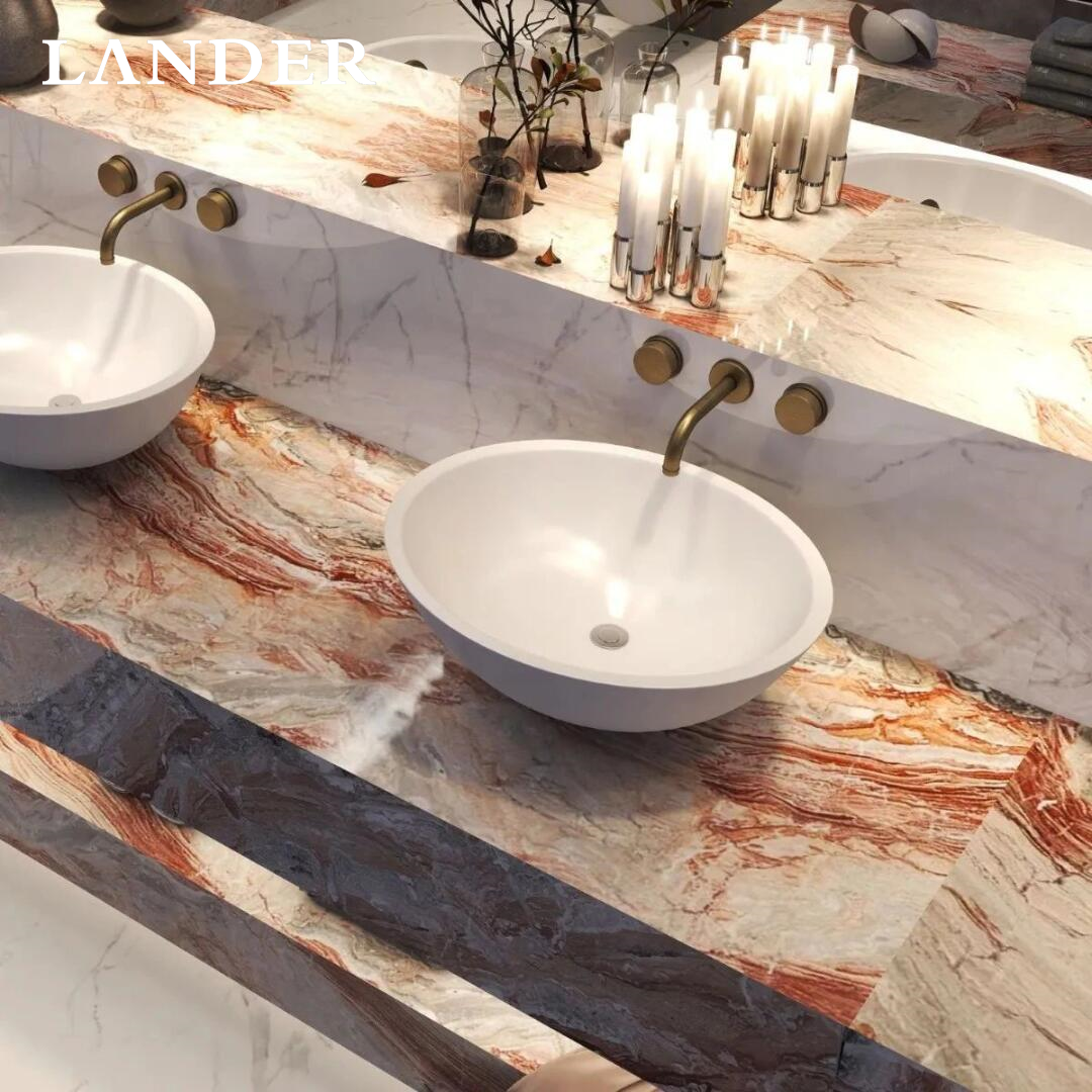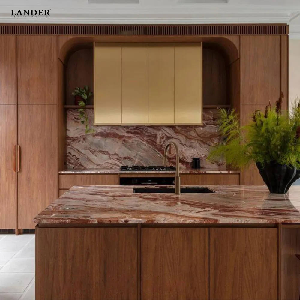 Полированный камень Monica Red — это страстный красный цвет с черными и серыми вкраплениями. Создает энергичный, теплый и привлекающий внимание акцент в любом помещении.