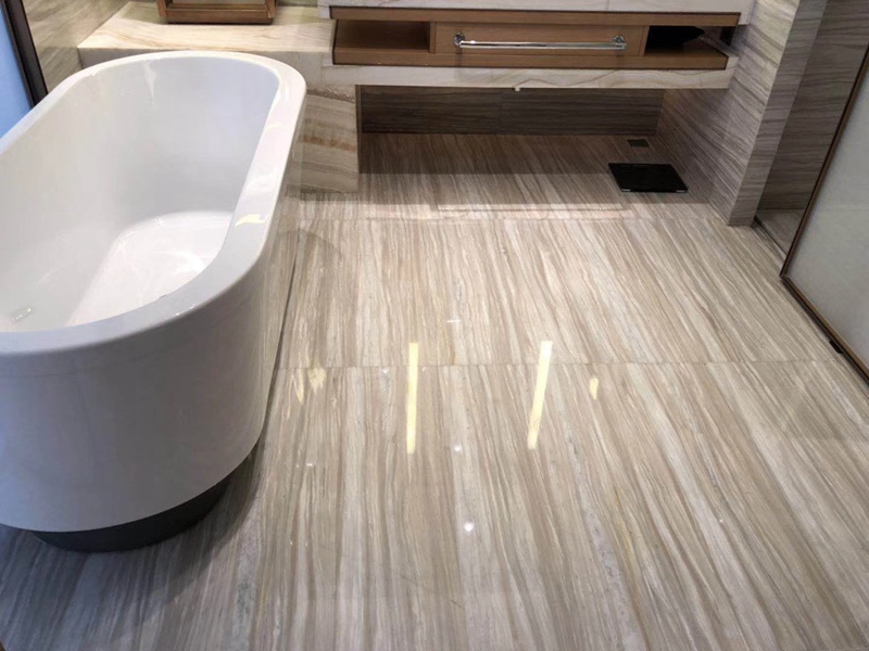 Полированный камень White Wood имитирует текстуру светлой, выбеленной древесины. Сочетает эстетику натурального дерева с практичностью и долговечностью камня.